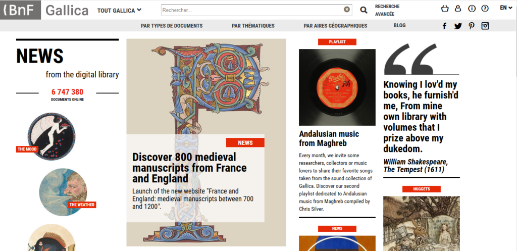 Gallica is a full text searchable database of the Biliothèque numérique of the Bibliothèque nationale de France. The search interface is available in French, English, Spanish, and Portuguese.