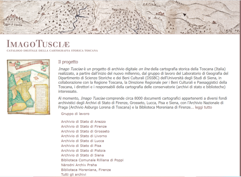 A growing digital archive of historical maps which contains over 8000 images from Italian archives, including Siena, Florence, Pisa, Lucca, and Livorno.
