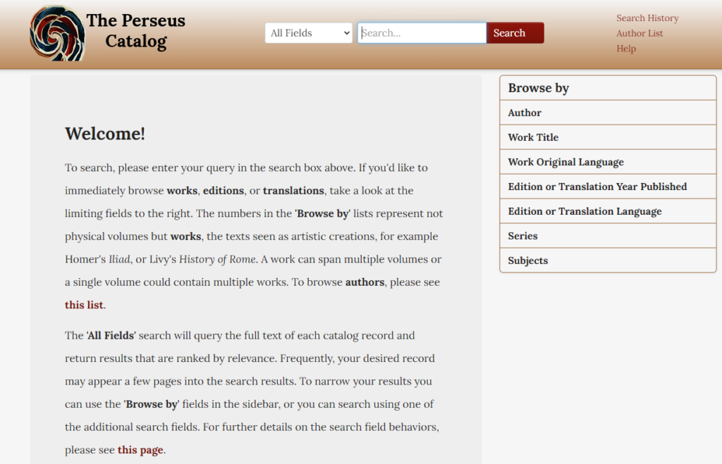 An online library providing access to a wide variety of primary and secondary sources of classical texts and translations such as Lewis and Short’s Latin Dictionary, as well as Renaissance sources and texts which are searchable via the site’s search function. The site also includes database of art and archaeology artifacts.