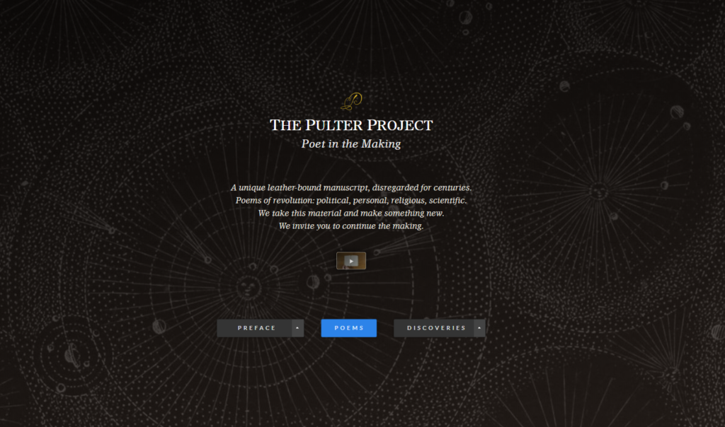 This site operates as both a teaching and a research resource for students and scholars of the English literary Renaissance. It not only provides freely-accessible editions of Pulter’s still little-known poetry, it also brings those editions into close contact with images of the unique manuscript witness, while contextualizing them through contact with other verbal and visual materials that help to integrate Pulter’s novel literary voice into the canon. The deliberate display of contrastive versions also helps to pull back the curtain on scholarly editing.